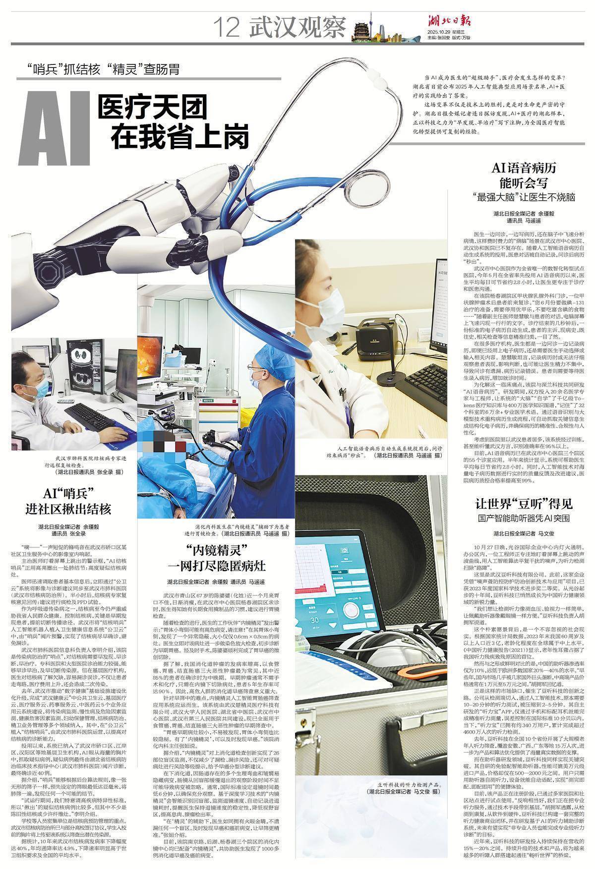 这场变革不仅是时期上的收效,更是对生命更严实的督察。湖北日报全媒记者连日拜谒发现,AI+医疗的湖北样本,正以科技之力为“早发现、早调整”写下注脚,为天下医疗智能化转型提供可复制的教导。