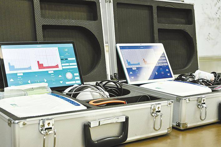 豆听科技的听力检测家具。(湖北日报全媒记者 马文俊 摄)